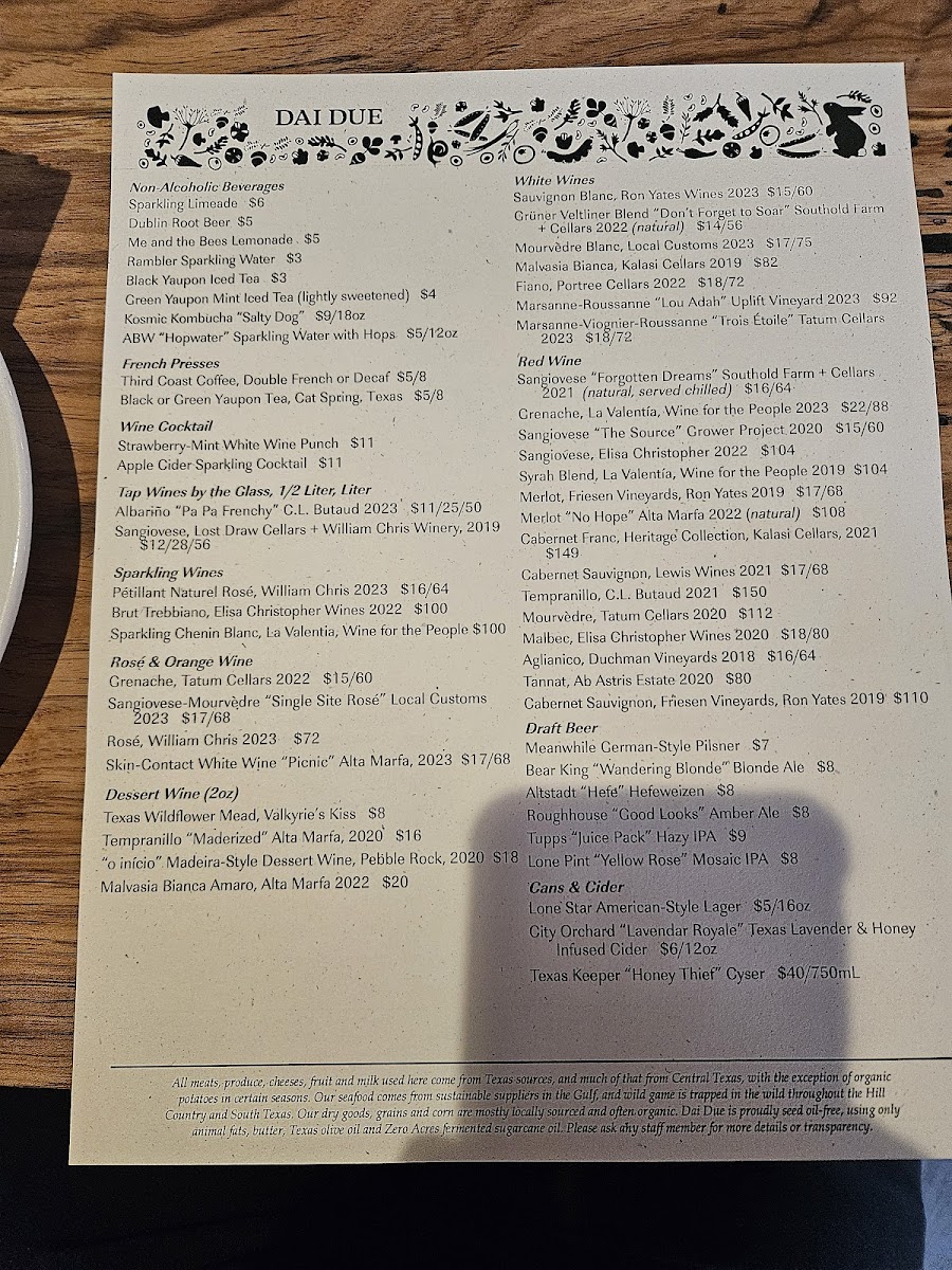 The attention to detail extends beyond the plate; the staff at Dai Due is known for their friendly and attentive service, enhancing your dining experience from start to finish. With a commitment to local sourcing and crafting dishes that celebrate Texas ingredients, Dai Due is not just a place to eat—it's a celebration of culinary innovation.